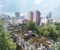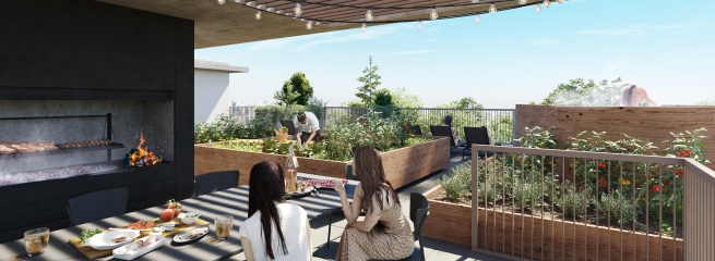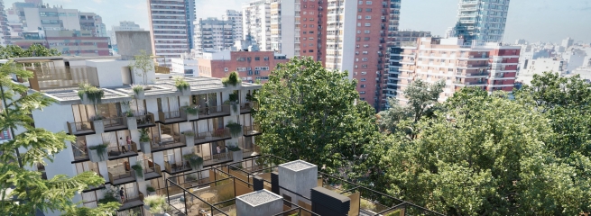 En planta baja, bike parking y un circuito trazado por una bici senda, promueven una movilidad consciente, mientras que la incorporación de una huerta orgánica en la terraza invita a una vida natural e incentiva la integración de una comunidad vecinal.