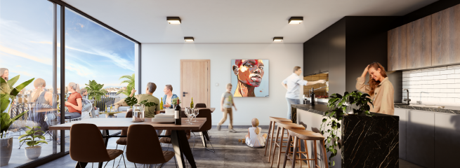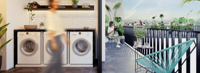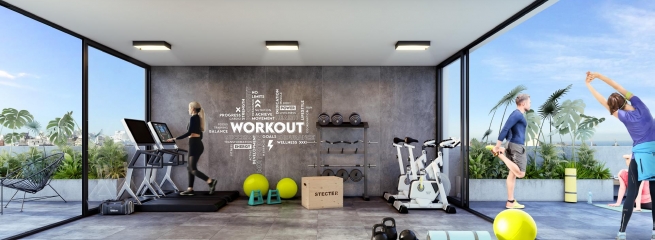 Se diseñaron espacios de amenities en piso 13 donde se encuentran la barbacoa, el gimnasio y el lavadero todos conectados por una terraza solárium.