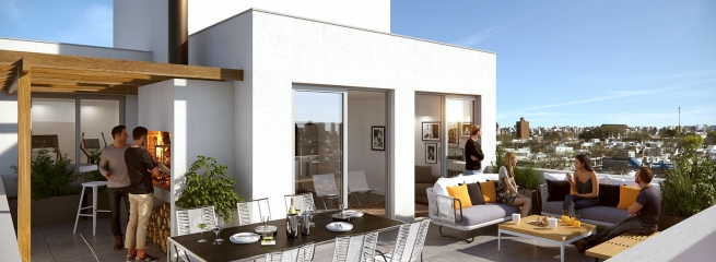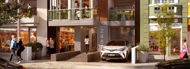 OMBU GARIBALDI ofrece un diseño moderno y funcional de ocho pisos, contando actualmente con unidades de 1 dormitorio, construcción de alta calidad con espacios bien aprovechados.