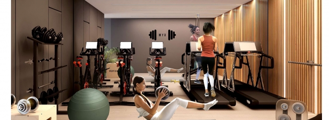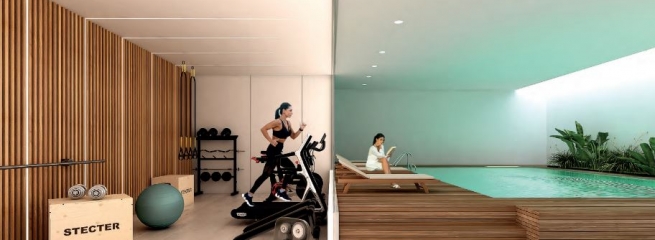 En planta baja se prevé un sector para gimnasio, incluyendo dos baños, y piscina con solárium.