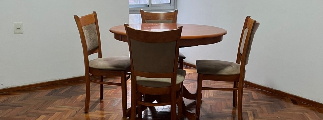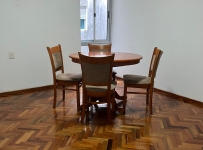 Amplio living comedor a la entrada, con ventana, pisos de parquet.