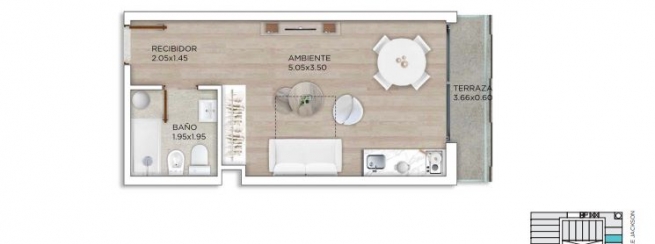 79 unidades, monoambientes 1 y 2 dormitorios.