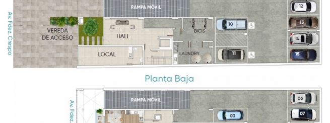 El edificio consta de 30 unidades, monoambiente, 1 dormitorio y 1 unidad PH de 2 dormitorios.