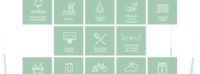 Amenities: piscina con deck, amplia barbacoa, gimnasio in-out equipado, espacio de cowork y sala de lectura, espacio de relax, cancha de futbol/basquet, terraza 360 ° con living exterior, lavadero, bike parking